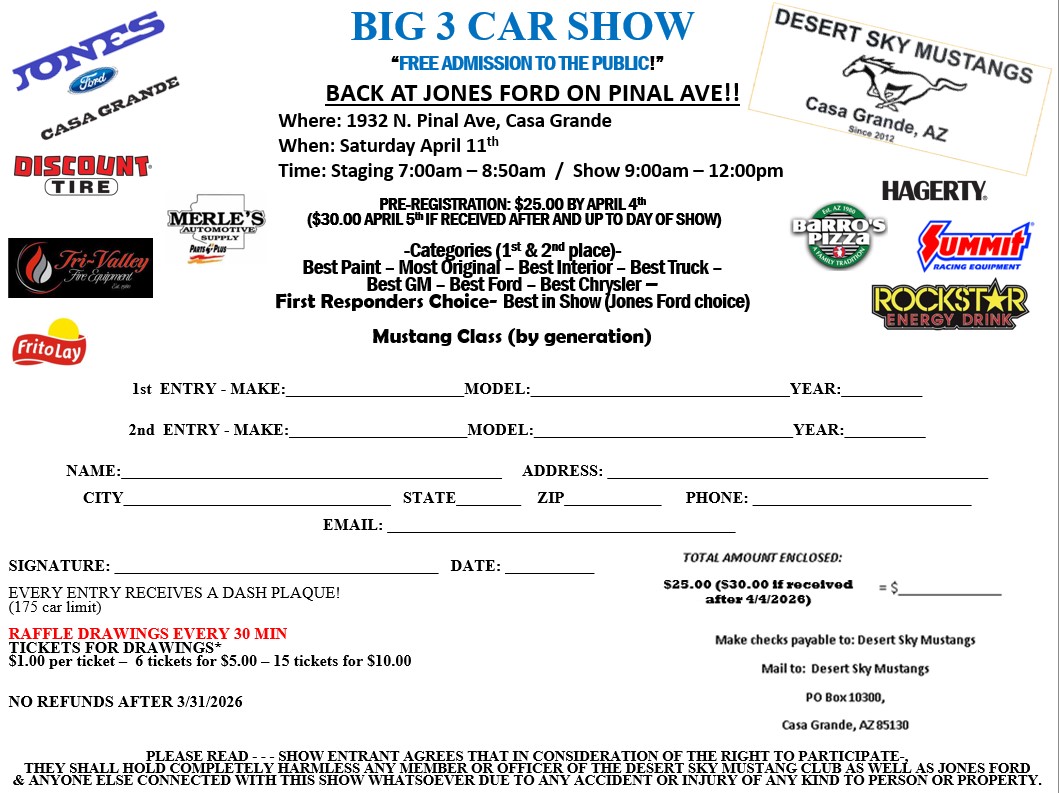 11 Casa Grande, AZ. The Big 3 Car Show Event Flyer Registration Form
