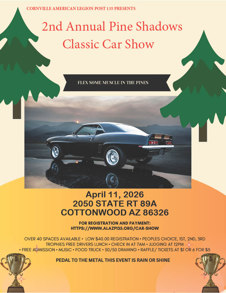 11 Cottonwood, AZ. 2nd Annual Pine Shadows Classic Car Show Event Flyer