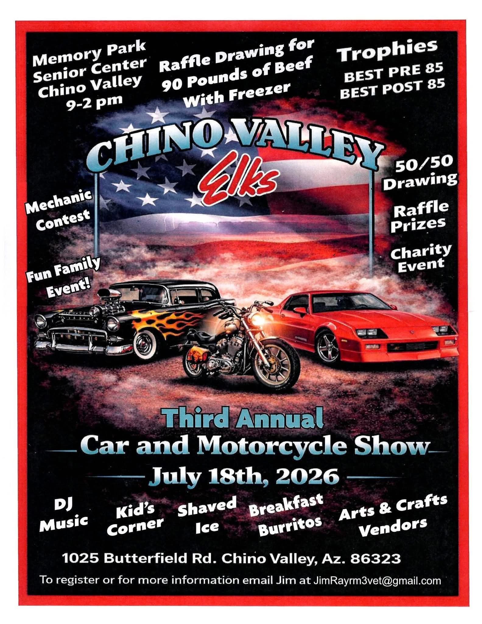 20 Chino Valley, AZ. Chino Valley Elks Third Annual Car and Motorcycle Show Event Flyer