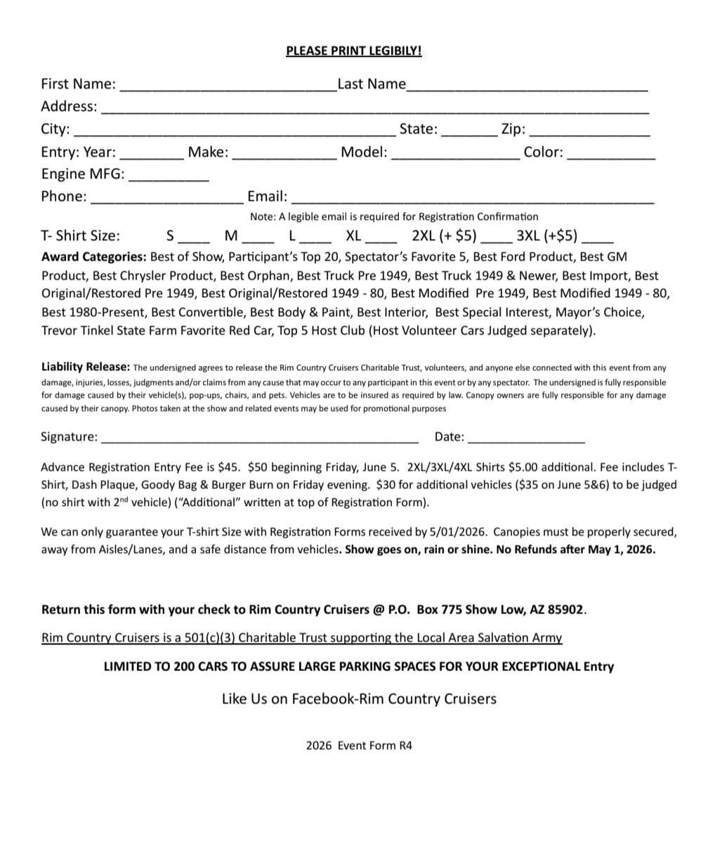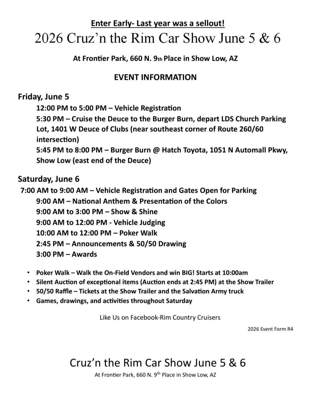 Event Flyer Entry Form5 - 6 Show Low, AZ 2026 Cruz'n The Rim Car Show Event Flyer Registration Form