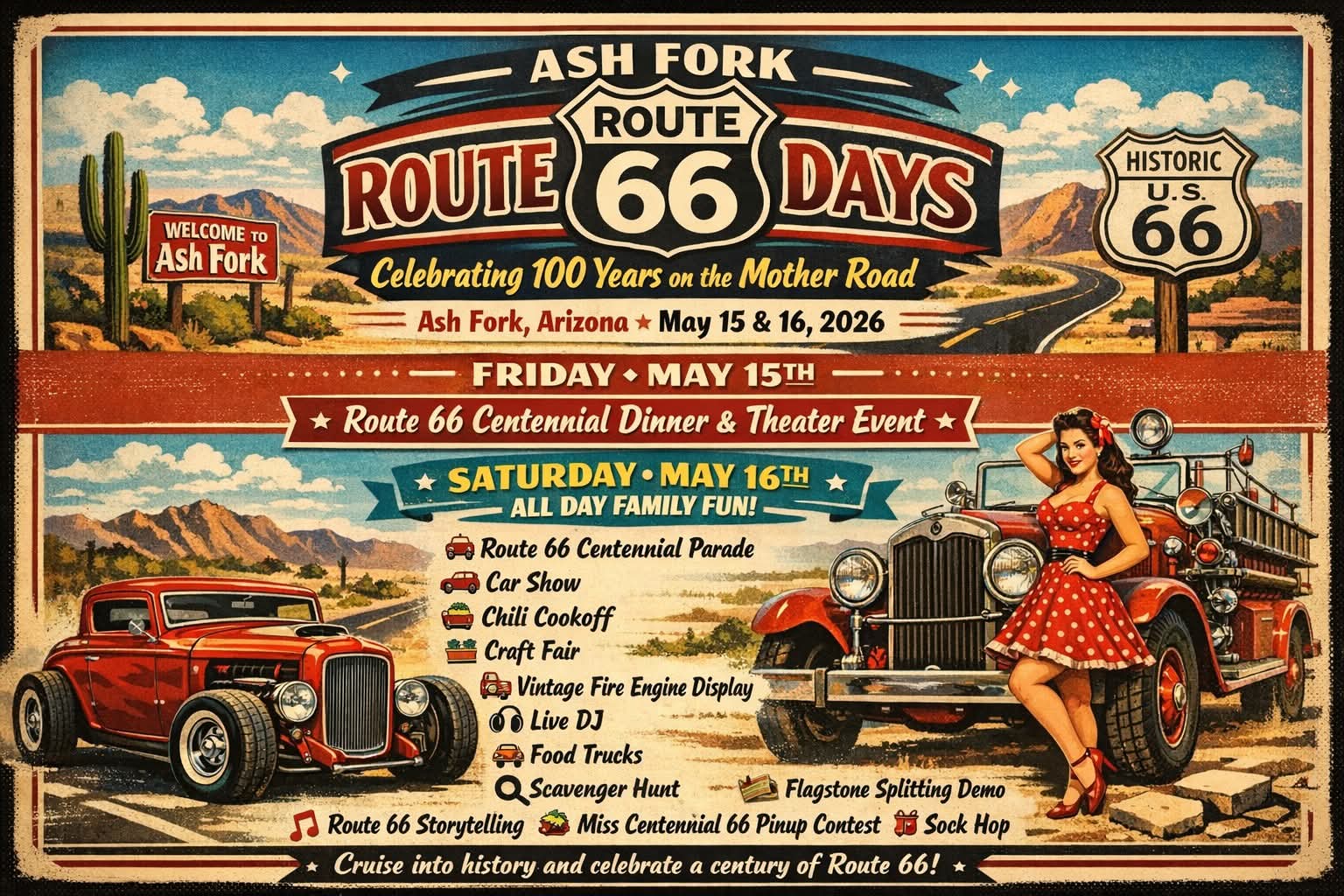 15 Flagstaff AZ. 100 Years On The Mother Road - Route 66 Mother Road Classic Event Flyer Information and Registration